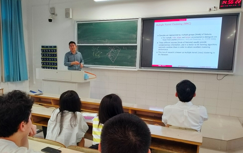 在玉衡北410开展主题为“新型多视图聚类分析”的学术讲座,学院部分教师代表和学生代表聆听了本次讲座,讲座由院长杨恒伏主持。
