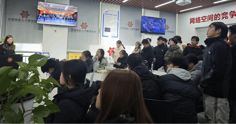 在湖南文盾信息技术有限公司,“方班”网络安全人才教育中心展示了其特色培养体系。该平台聚焦网络安全人才校企共育,构建了实战教学、技能认证、就业对接三位一体的培养机制。企业导师结合行业发展趋势,针对性地讲解了网络安全专业学生的学业规划路径与资质认证通道,为学生专业能力的提升指明方向。