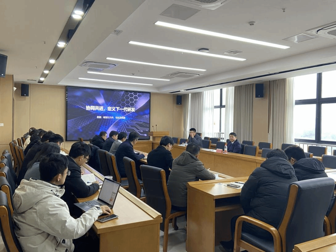 座谈会上,杨恒伏向企业方介绍了学院发展概况以及在学科建设、人才培养等方面的发展成效与特色优势。詹明学以“碳硅协同”战略为切入点,深入阐释企业“产品即技术,技术即产品”的创新理念,全景展示了公司在智能制造、算法研发等领域的核心竞争优势。他指出,构建代码与算法的数字生产线是企业核心竞争力所在,智能体(Agent)正在重构产业协作生态,校企可在碳硅协同工程师培养方向开展深度合作,共同破解智能制造领域复合型人才短缺的行业痛点。在产学研融合研讨环节,校企双方围绕技术攻关、课程共建、实习实训等关键议题展开深度对话。