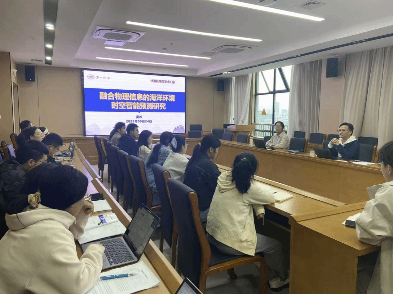 本学期首期博士论坛在立园楼712成功举办,吴松博士作题为《融合物理信息的海洋环境时空智能预测研究》的专题讲座,活动由副院长杨梦云主持,全院青年教师和研究生积极参与。