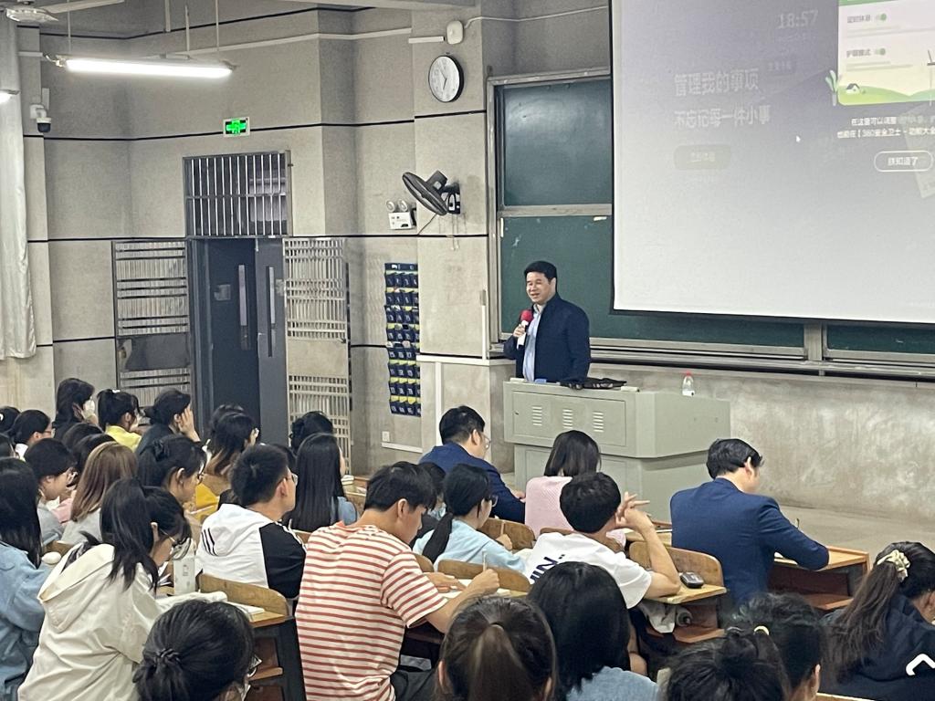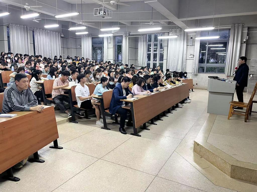 党委副书记陈奕、外国语学院党委副书记禹晗以及三个学院学工办主任参加了党课,党课由刘立勇主持。