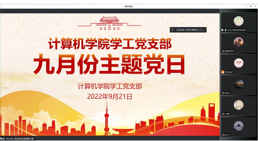 9月21日,午夜av 学工党支部以线上形式开展九月份主题党日活动党支部书记关红儒团委书记叶晶辅导员付小霞、刘森林及全体学生党员参加本次活动,罗林担任主持人。