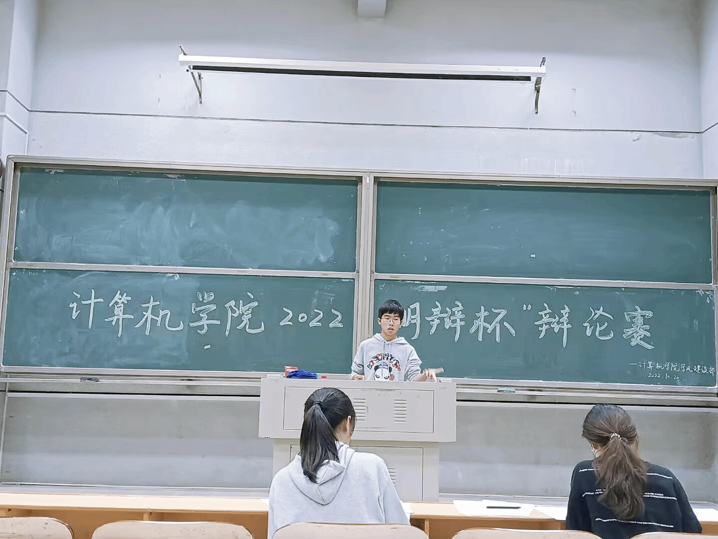 在润寰南106开展“明辩杯”辩论赛初赛。本次活动由学风建设部组织承办。