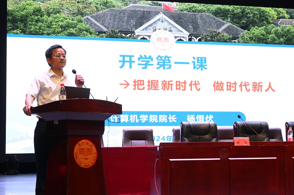 周聪作为教师代表发言,他强调了学习计算机的重要性,并勉励新生们要打下坚实的基础,提升解决问题的能力和团队合作的能力。老生代表22计科3班的施晨曦同学和新生代表24数据科学2班的吴一凡同学分别上台发言。施晨曦分享了自己的学习经验和感悟,她通过自己的亲身经历告诉新生们如何更好地适应大学生活。而吴一凡则表达了对未来大学生活的美好憧憬,表示将在新的旅程上不懈努力。
