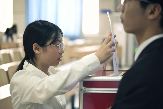 2023-2024学年学生会工作报告》,带领全体参会人员共同回顾了过去一年的工作历程和取得的成绩。随后,会议表决通过了新一届学生会主席团成员候选人名单、常任代表委员会委员名单以及选举相关的监票人、计票人名单等议案。各位代表投票选举产生了新一届的学生会主席团成员。