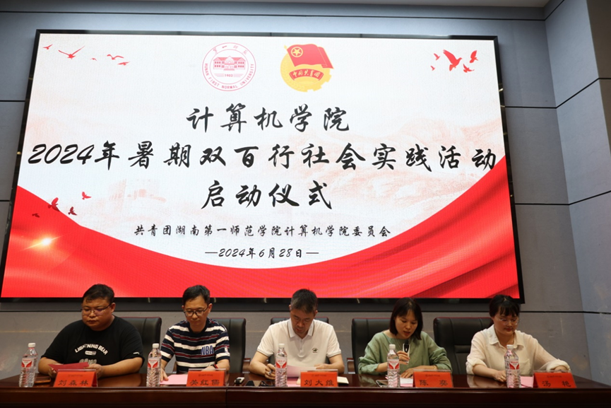 在怀中南110报告厅举行2024年暑期“双百行”社会实践活动启动仪式。院党委副书记(主持工作)刘大维、院党委副书记陈奕、学工办主任关红儒、院团委书记刘森林、辅导员汤艳及午夜av