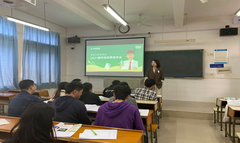 为了帮助2021届毕业生更好的就业,4月16日上午,信工院特在润寰南203召开了2021届校园招聘宣讲会,特邀请学易优教育集团进行招聘宣讲,午夜av 大四同学积极参加,通过这次宣讲,引起了毕业生的就业激情。