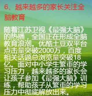 《最强大脑》是江苏卫视主办的一个脑力节目。随着这个节目一·二·三季的热播,脑力运动在中国也慢慢热了起来,各种培训项目也像雨后春笋一样多了起来,这些对于培养孩子的兴趣和开发右脑形象思维也是有很大帮助的。