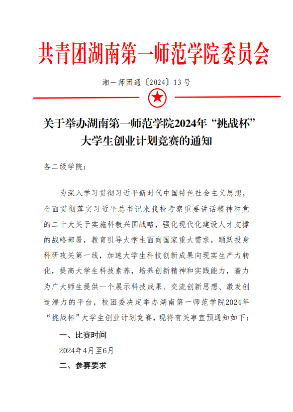 关于转发《关于举办2024年“挑战杯”大学…南第一师范学院选拔赛的通知》