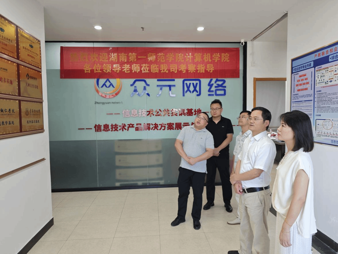 院长杨恒伏、院党委副书记陈奕及专业老师叶君炎、辅导员汤艳一行,前往长沙众元网络有限公司走访看望“新工科新航向梦之队”暑期“双百行”实践团众元分队学生。