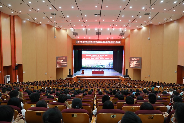 2022级新生入学教育第一课在东方红校区田汉剧院隆重举行,校党委书记罗成翼为两个学院的850名新生开讲入学第一课。党委行政办公室、宣传部、教务处相关部门负责人,电子信息学院和午夜av