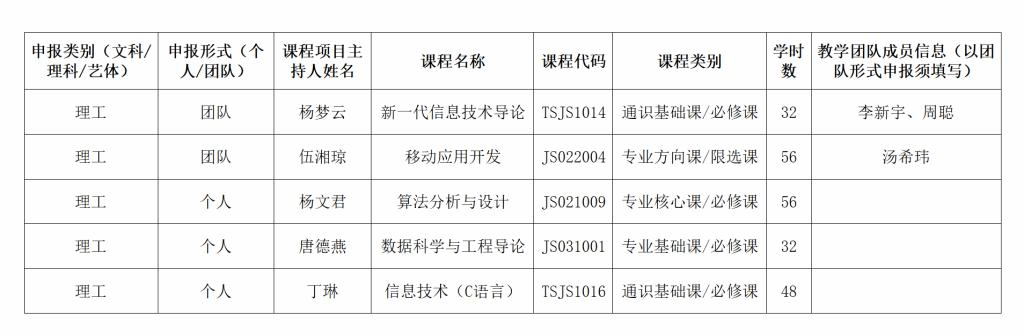 根据《关于做好2023年秋季学期“两性一度”金课建设项目申报工作的通知》(湘一师教通〔2023〕50号)的有关要求,学院进行了“两性一度”金课申报工作。经个人申报、院部评审,现将学院推荐结果公布如下: